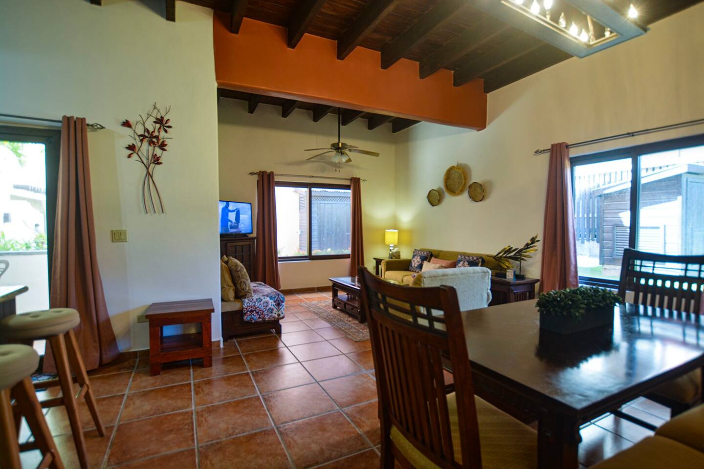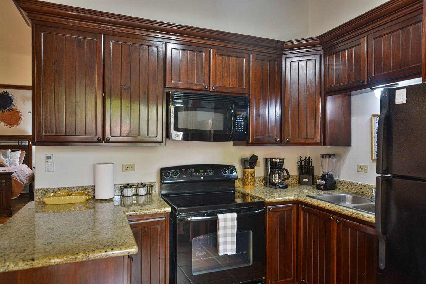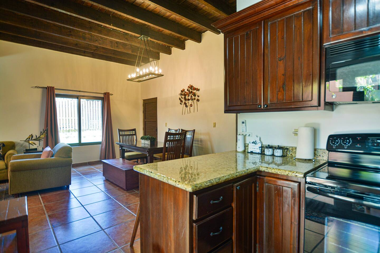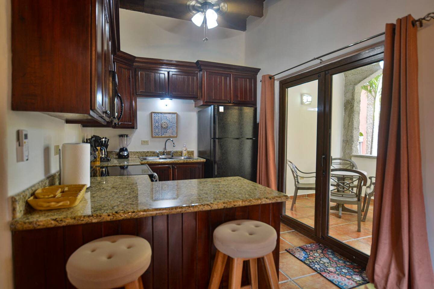 Well appointed kitchen with full size fridge and oven makes cooking meals easy. Plenty of space to relax and dine at home. Don`t want to cook? Just a short stroll away you will find endless choices for dining out along the beach and local area. This condo is in the heart of West Bay, Roatans` most beautiful beach.