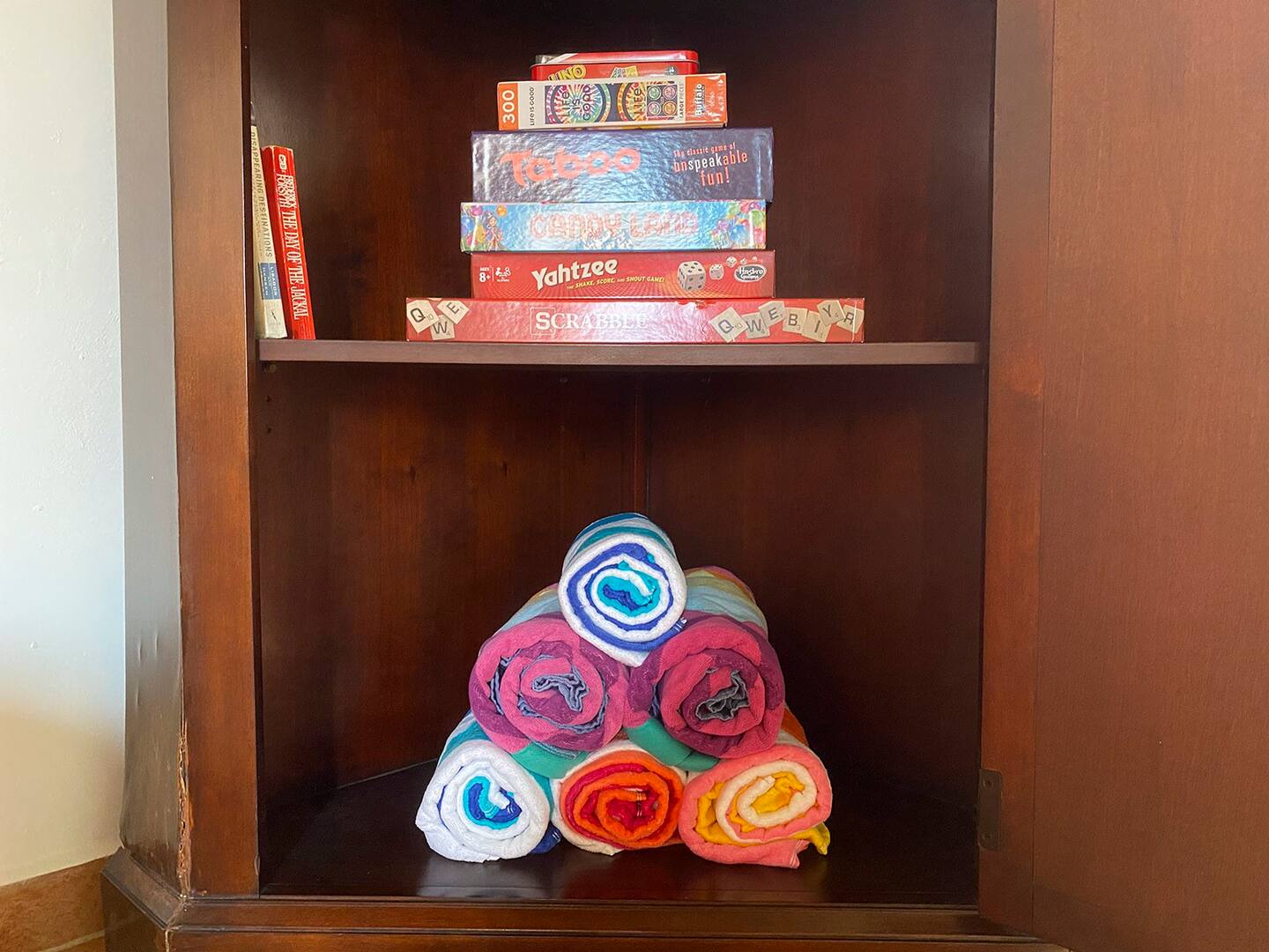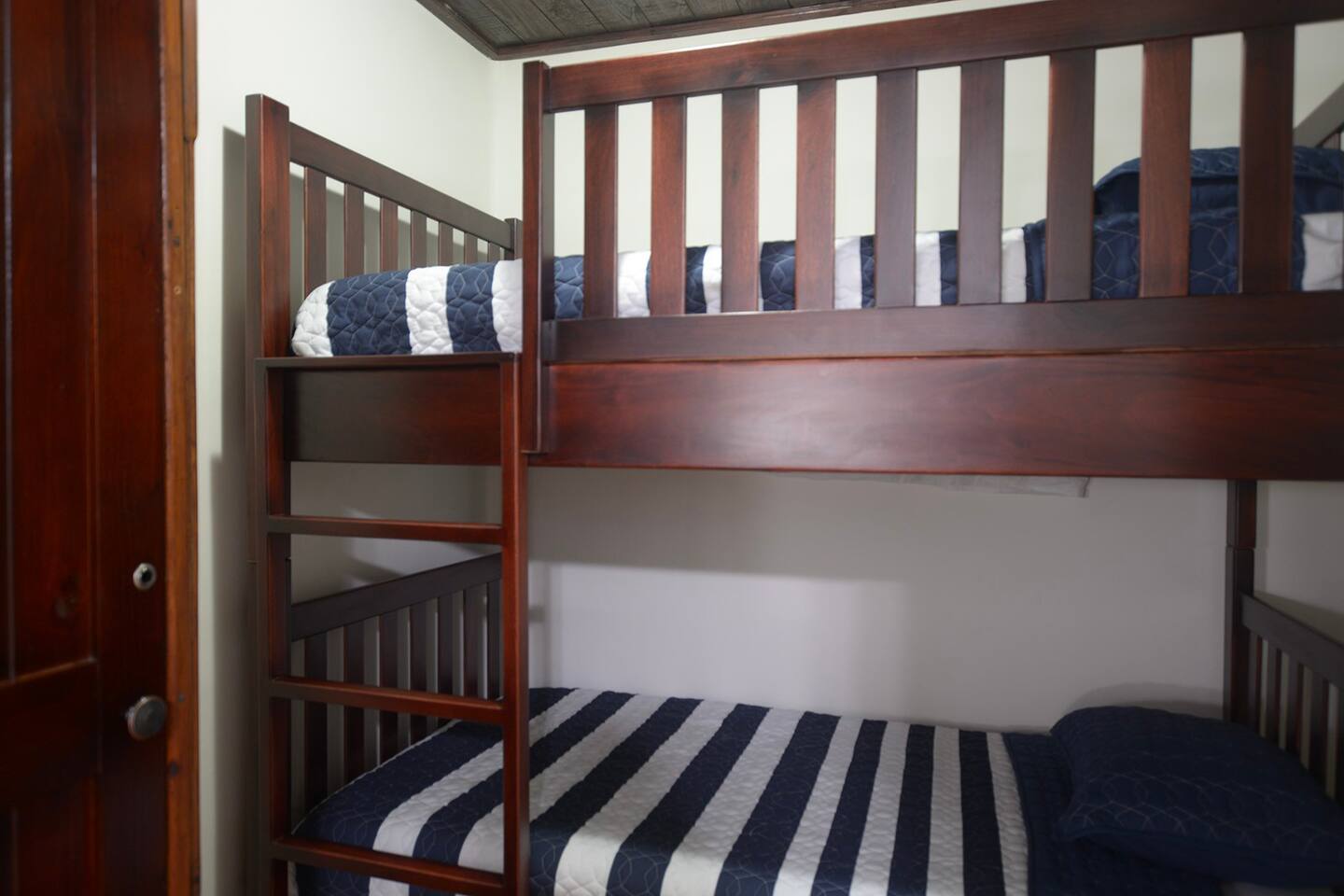 The bedroom has a queen bed with luxurious high quality linens. The bunk area is in the bedroom, perfect for kids or singles. The living room sofa converts into a queen bed, suitable for 1 adult or two children.