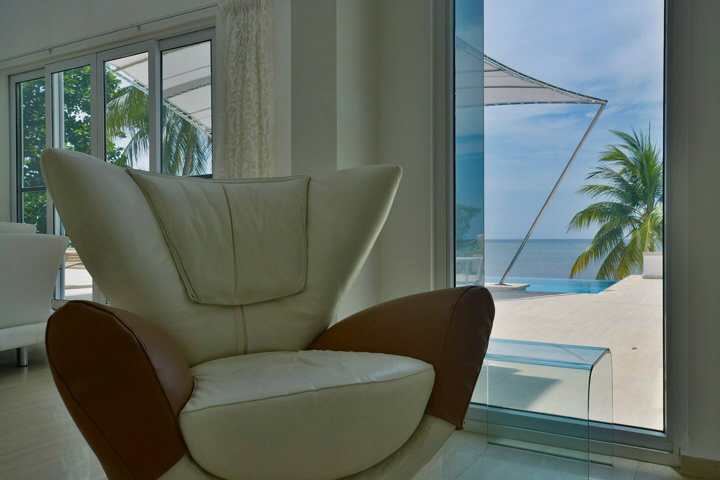 Further Moor is a modern, 4-bedroom Beachfront Villa with private infinity pool located on the beach in the exclusive community of Lawson Rock, Sandy Bay.