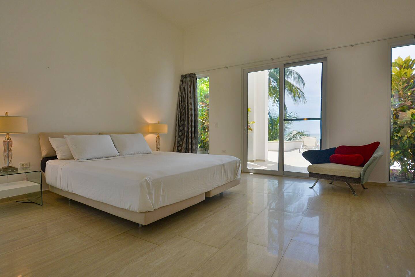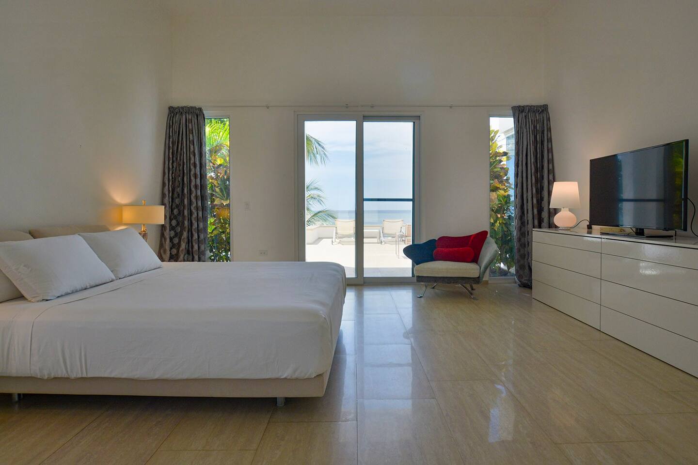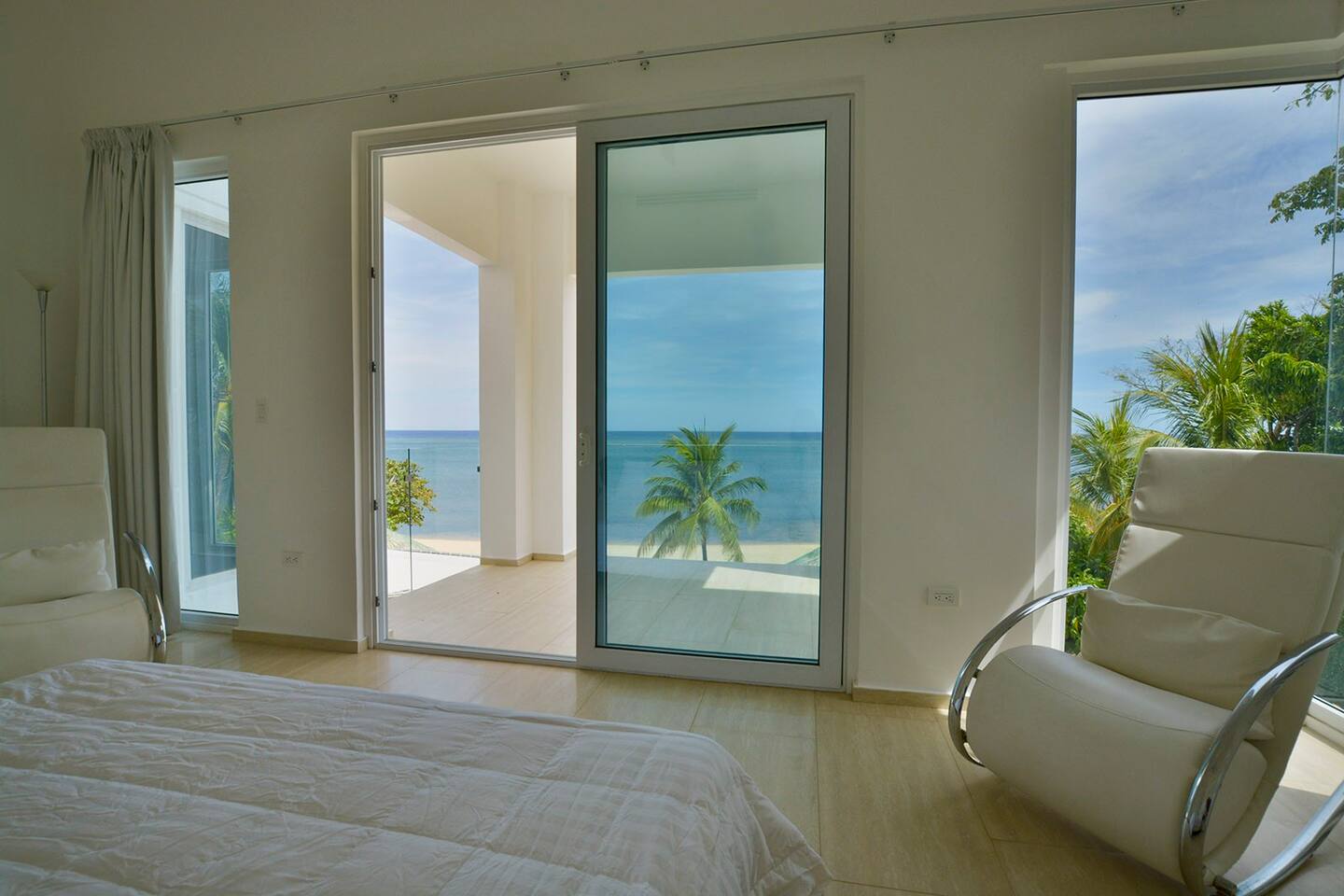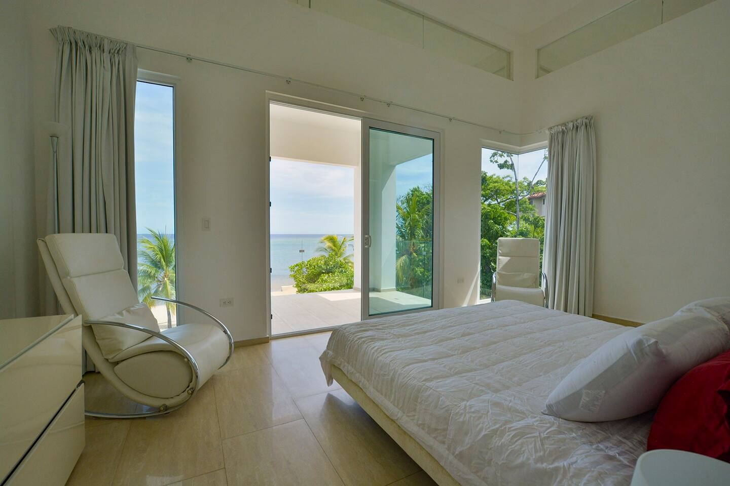 Three of the four bedrooms are beachfront with views of the beach. The master bedroom opens directly onto the pool deck. The two upper beachfront bedrooms have private balconies overlooking the beach. The 4th bedroom has garden views.