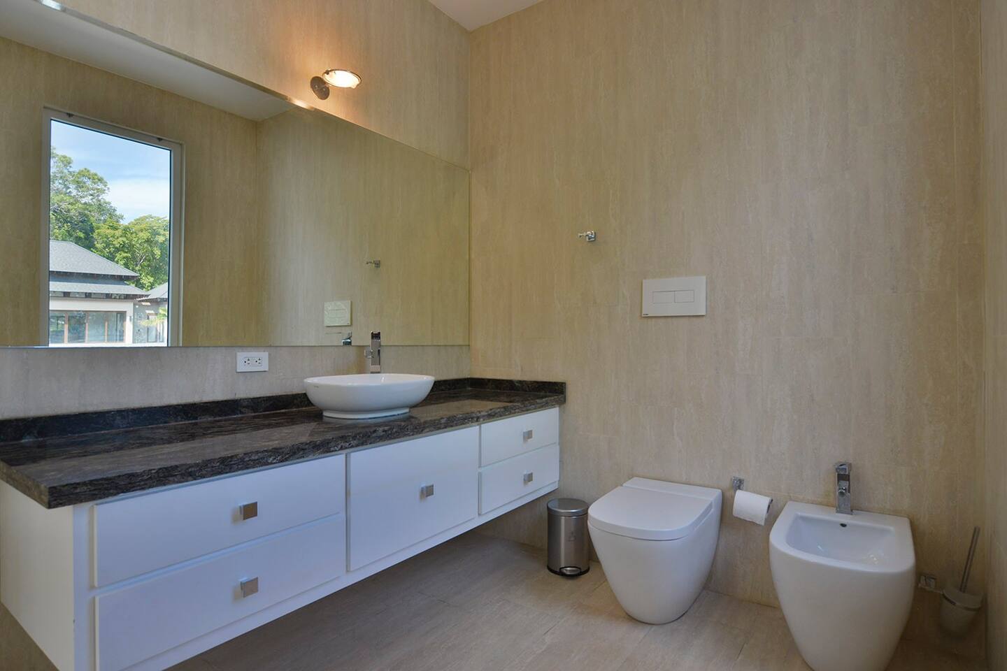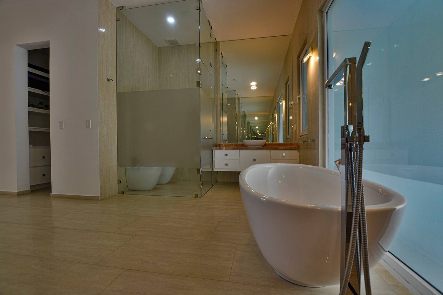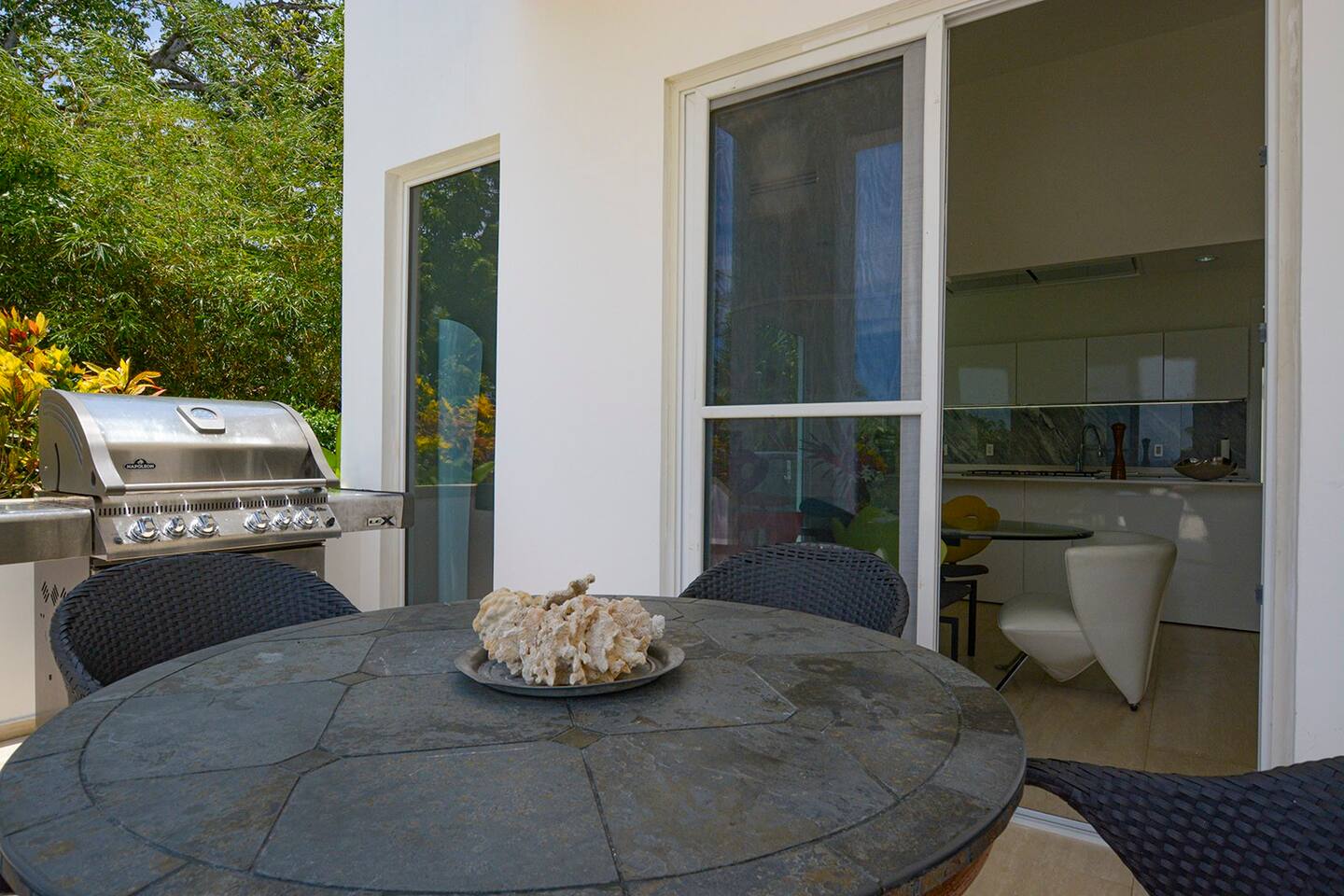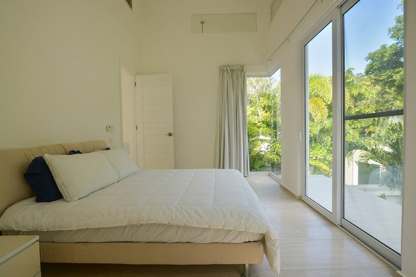 Three of the four bedrooms are beachfront with views of the beach. The master bedroom opens directly onto the pool deck. The two upper beachfront bedrooms have private balconies overlooking the beach. The 4th bedroom has garden views.